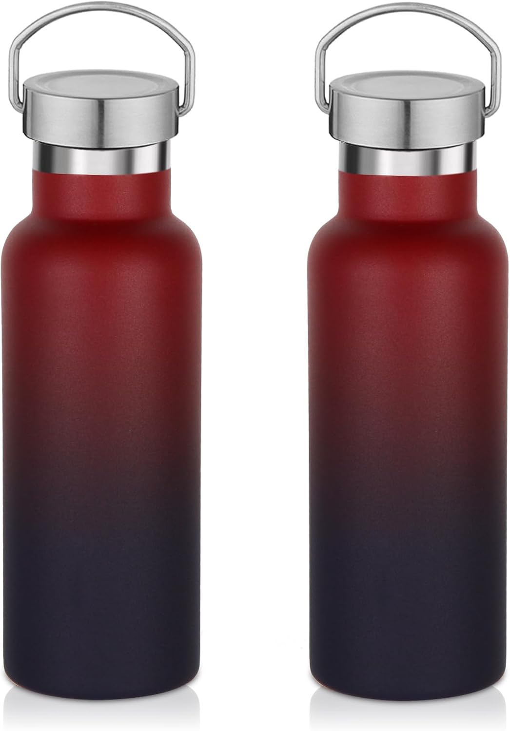 17oz Stainless Steel Water Bottle,Leak-Proof Sweat-Proof Travel Bottle,Double Wall Vacuum,Portable Insulated Cup,Reuseble Metal Bottle for School Sport Hiker Kid,Red Purple(2Packs)
